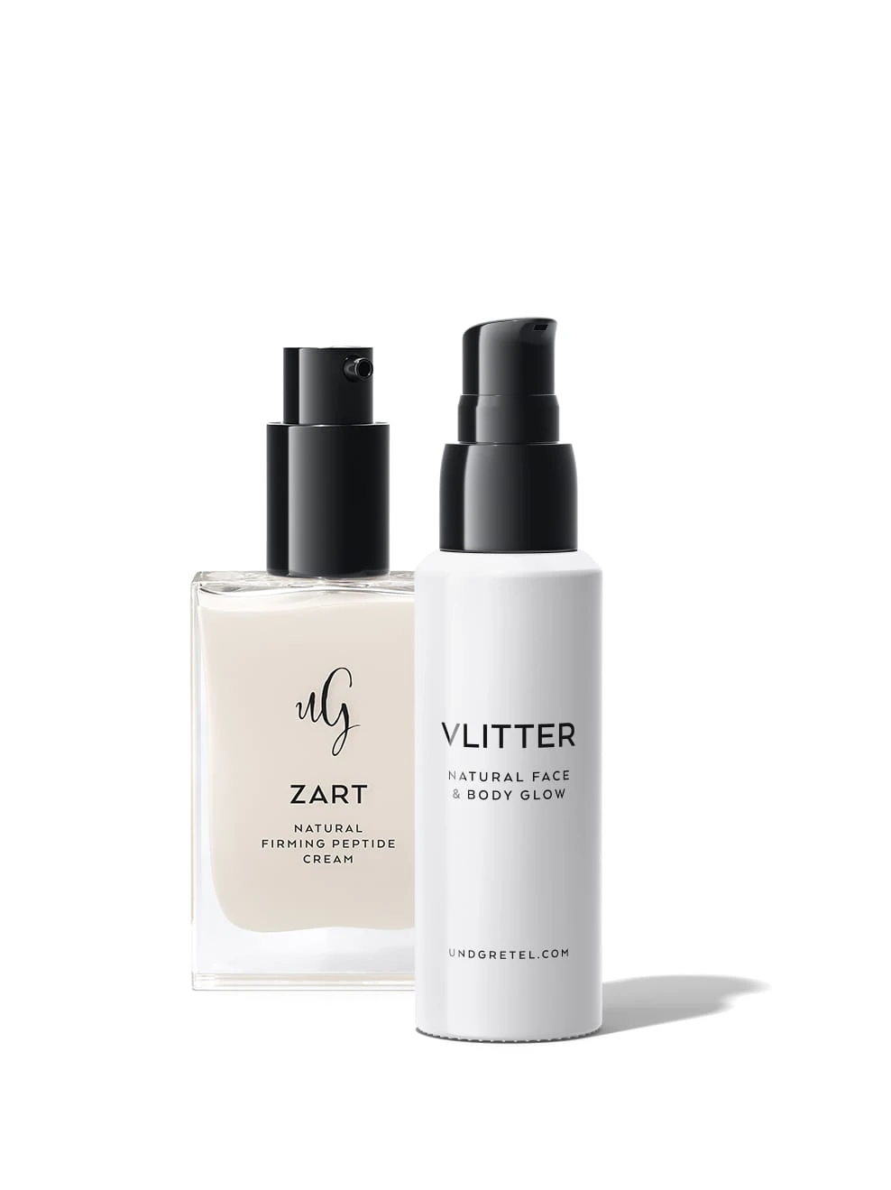 Hochpigmentierter, bronzener Glow mit kühlem Unterton im perfekten Drop-in Set mit unserer Multi-Peptid-Creme ZART. Nur ein paar Tropfen des Liquid Bronzers in die Creme hauchen blasser oder fahler Haut neues Leben ein. Für einen glowy Teint wie frisch nach dem Urlaub.