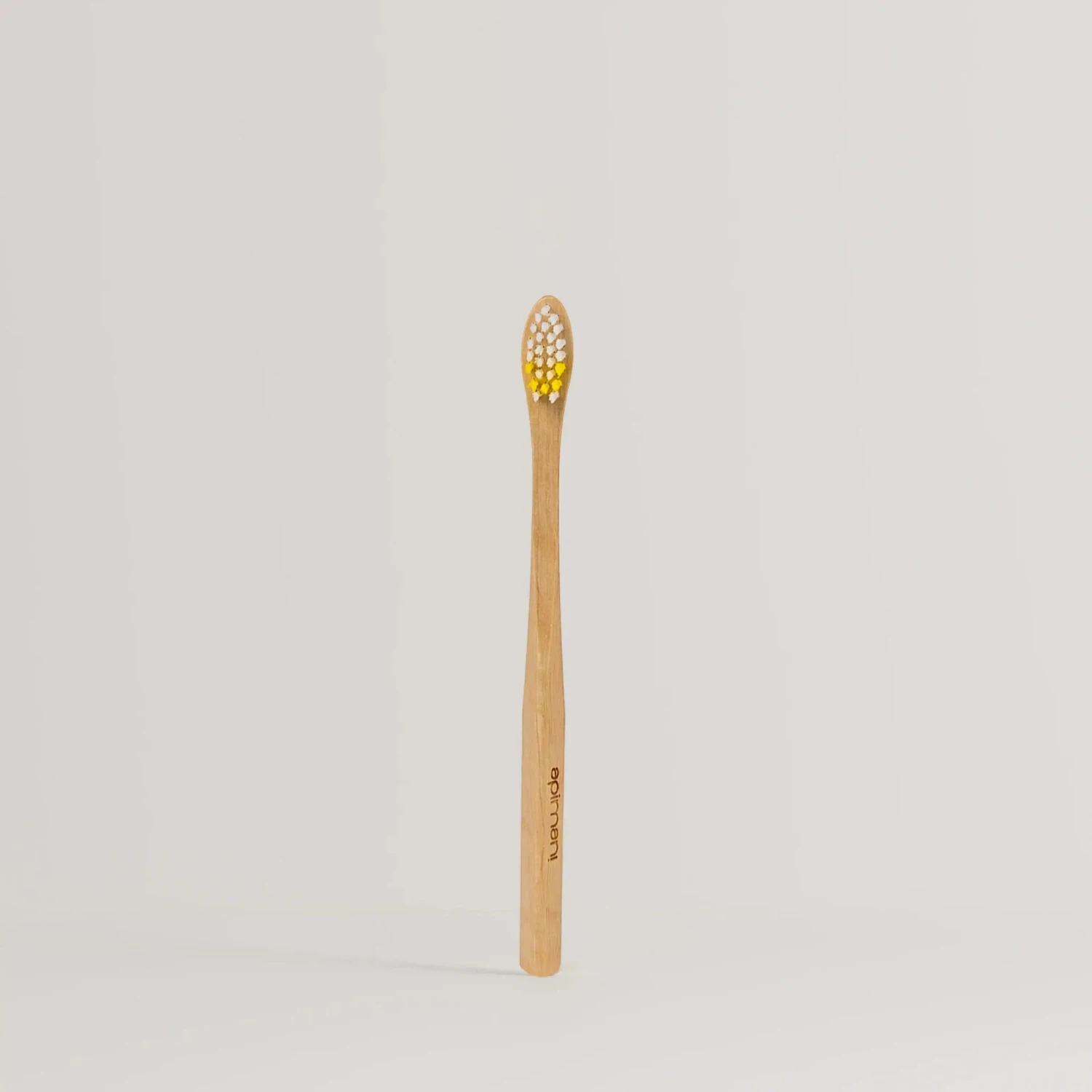 Fabriquée en France, près d’Angers, cette brosse à dents est pensée pour les plus petits : son manche s’adapte aux petites mains, et ses poils souples prennent soin des jeunes gencives, pour un brossage à la fois efficace et doux.