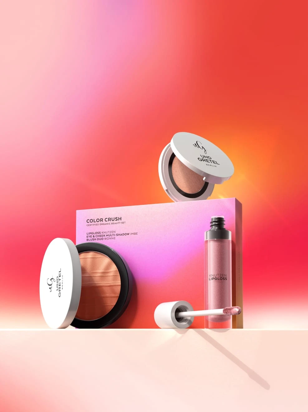 Das schmeichelndste Make-up Set, das Du jemals hattest: Die harmonische 3er-Collection mit einem Mix aus warmen und kühleren Peach-Rosé-Pigmenten fängt das Licht ein und schenkt Deinem Teint ein außergewöhnliches Leuchten. Irisierend, betörend, geheimnisvoll – ein absolutes Must-have.