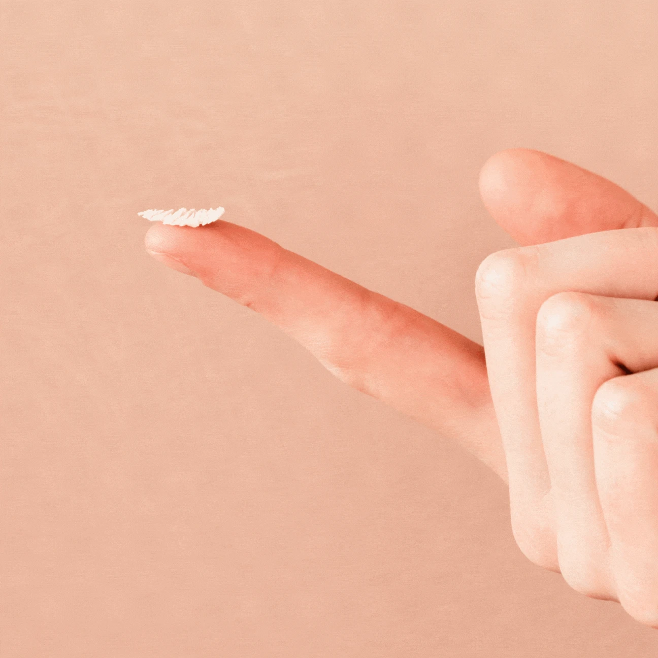 Livré avec sa spatule en bois pour prélever le produit. Application au doigt.