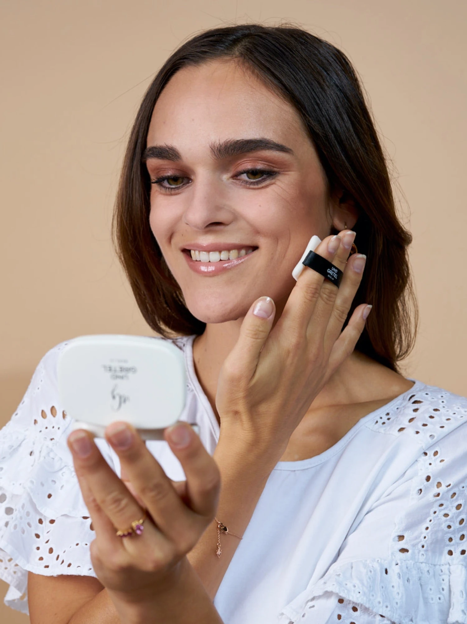 Meine Schlaufe eignet sich perfekt als Greifer – so kannst Du mit mir das Puder handlich und präzise auftragen, sodass die Haut mattiert wird und ein perfektes Photoshop-Finish erhält.