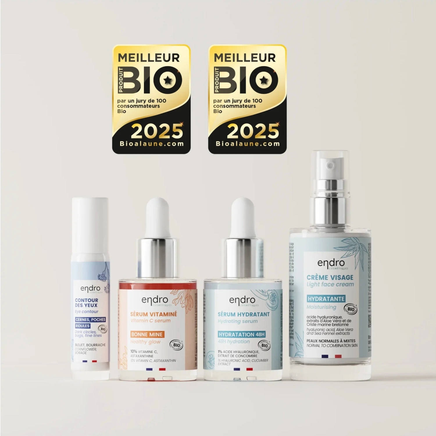 Contenances : Contour 10 mL | Sérums 30 mL | Crème 50 mL
