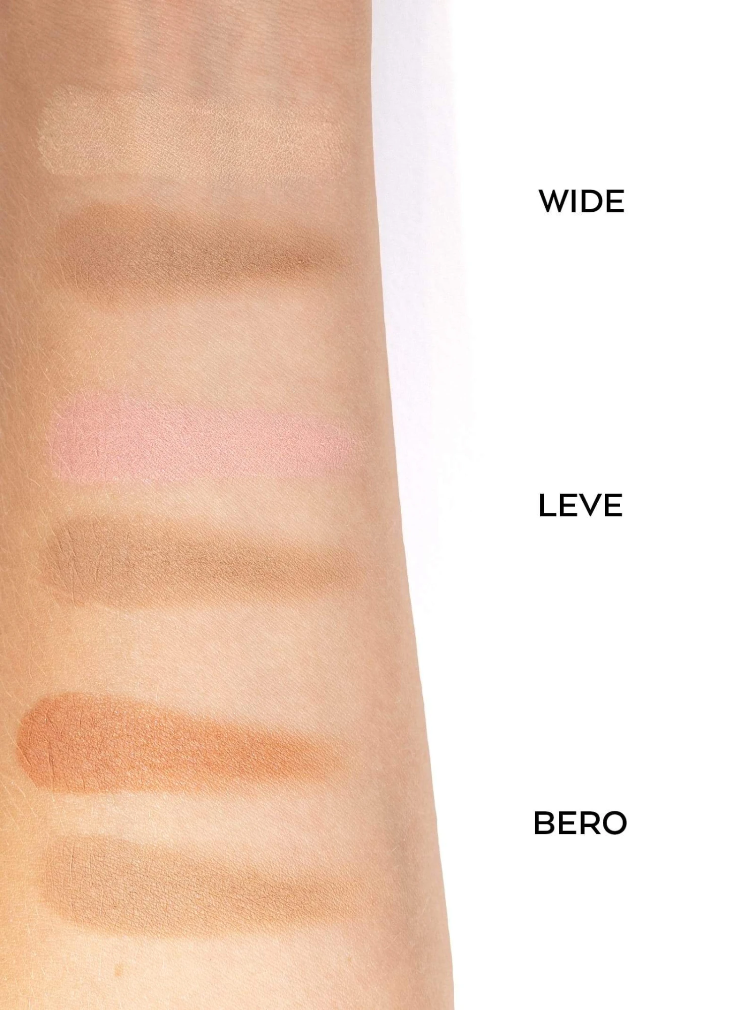 Die WIDE-Nuance ist ein leichter und sanfter Apricot- und Roséton, mit leicht goldenen reflektierenden Pigmenten, die für einen sanften Sonnen-Glow sorgen.
